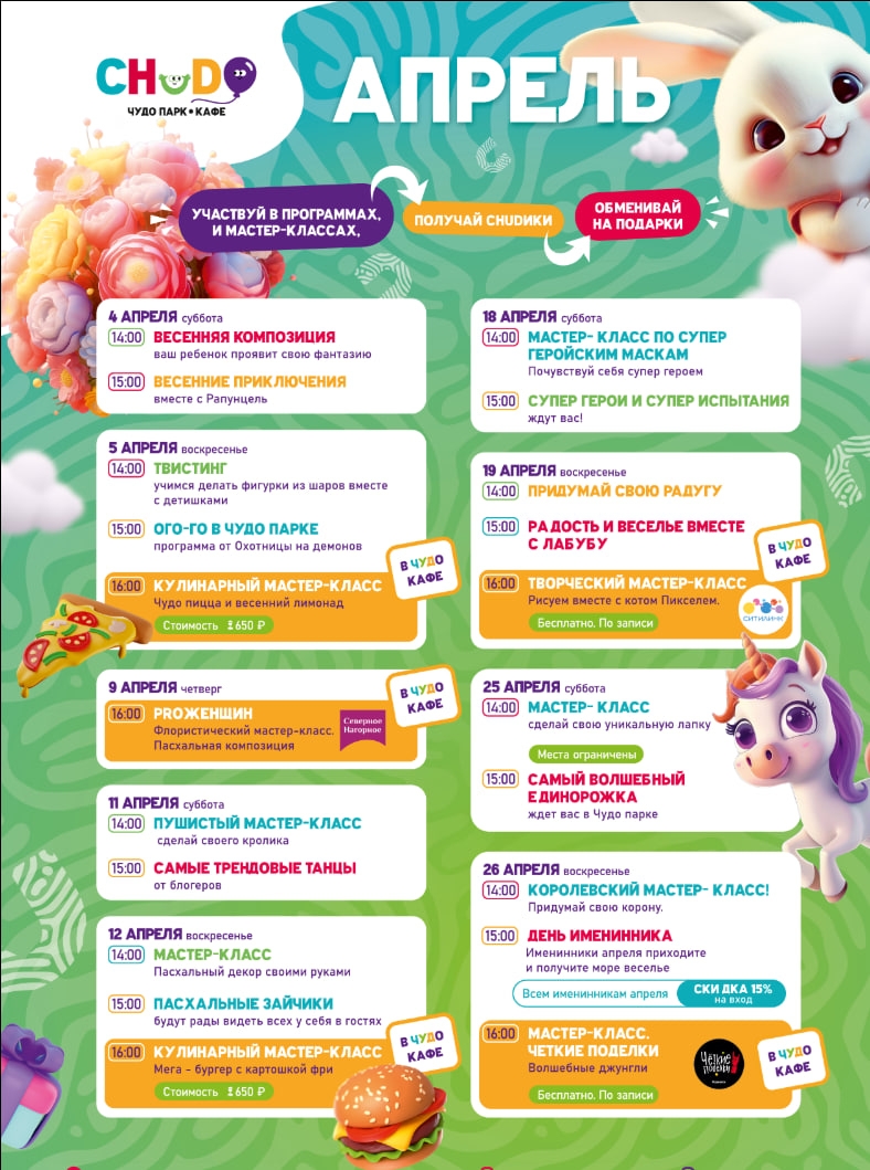 Приглашаем вас провести апрель в уютной атмосфере семейного парка и кафе «Чудо».