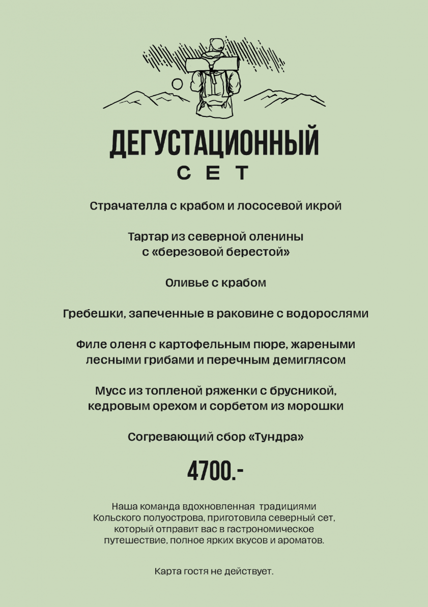 Наш сет вдохновлен традициями Кольского полуострова, отправит вас в гастрономическое путешествие, полное ярких вкусов и ароматов.