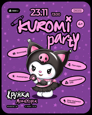 Говорят, вы обожаете Куроми? 23 ноября наше Кружке Мончегорск превратится в самое модное место Мончегорска — в настоящую штаб-квартиру Куроми?