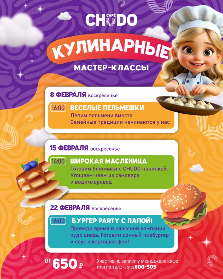 Устали от скучных выходных? Мы превратили каждый день февраля в яркое событие для вашей семьи! В нашем парке и кафе — не просто вкусная еда, а целая вселенная приключений, творчества и праздников. Выбирайте тему по душе: широкая Масленица, пиратские баталии, сказочное путешествие с Алисой или вечеринка с Among Us. Мы гарантируем: детский восторг и ваши спокойные выходные — в одном флаконе!