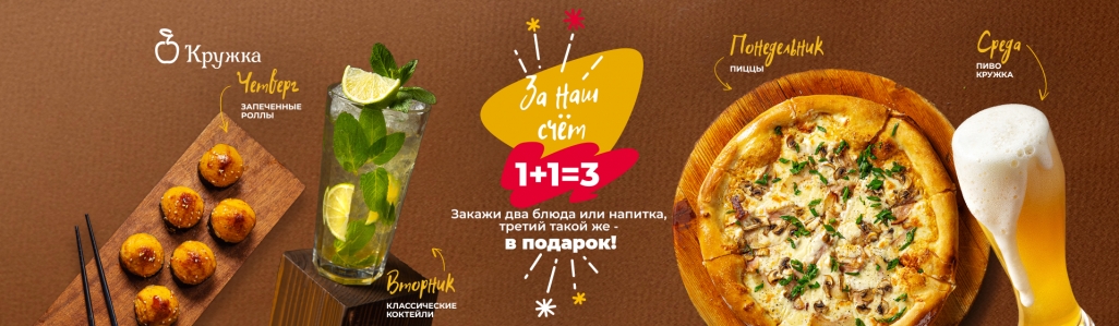 Понедельник — заказывайте 2 пиццы и получайте третью в подарок!